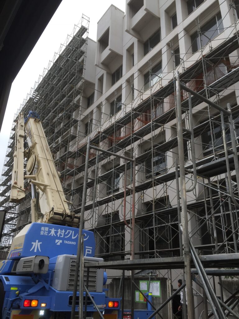 お疲れ様です。今回は過去に施工させていただいた水戸市の公共施設に施工した足場の紹介です。