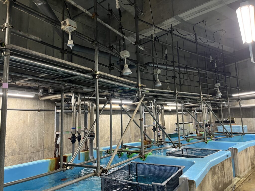 お疲れ様です。今回、茨城県某水族館バックヤード内にて照明器具移設用足場の施工を行いました。見ての通り下には水槽があり複雑な足場を要する環境でした。水槽の上での作業で資材や工具の落下の恐れがあり、落とし