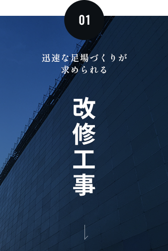 改修工事を行う際に必要な足場工事。安全性・機動性に優れた足場を組むことが重要です。