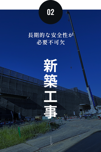 新築工事は比較的長工期になるため、足場の設置期間も長くなります。そのため、長期にわたって安全を確保するのが大切です。