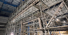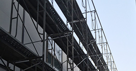主にビルなどで使用される足場。各部材が軽量で扱いやすいといった特徴があります。また、強度が高く、安全性にも優れています。